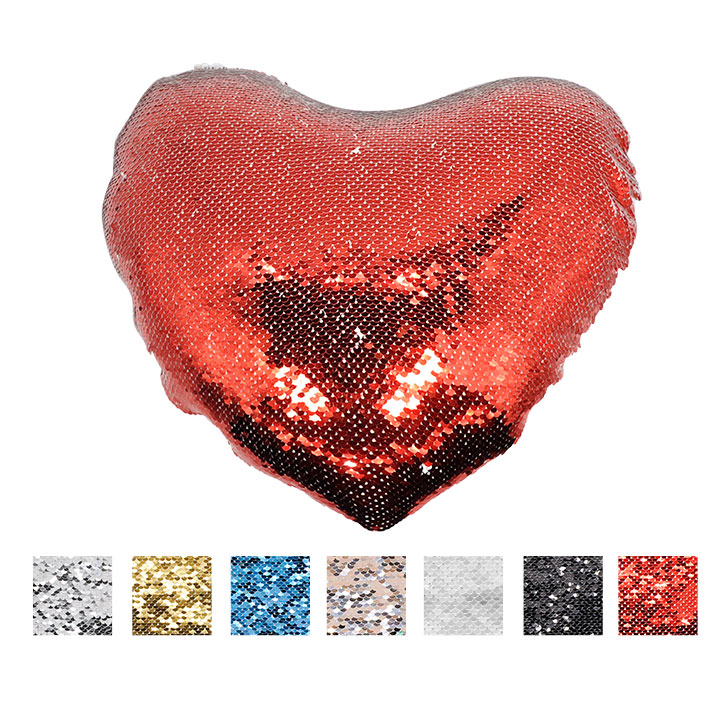 35 x40cm Heart Shaped Flip Sequin Cushion Cover (Peach Skin/Short Plush)